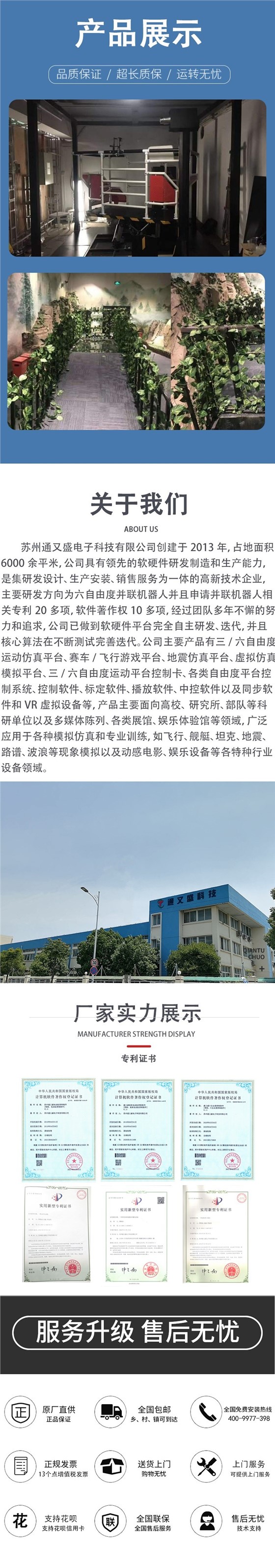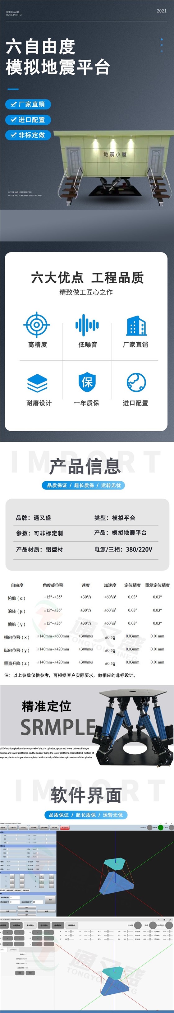 六自由度地震体验平台采用最先进的六轴运动控制系统,适用于地震科普场馆、科技馆、游乐场所使用,最真实地受众亲身体验地震的感觉,突出体现地震时地面剧烈抖动、波动纵波、横波,加之视景、音响、特效的有机配合,让人身临其境。更进一步了解地震的相关知识,达到一定的科普效果,提高人们的防震减灾意识